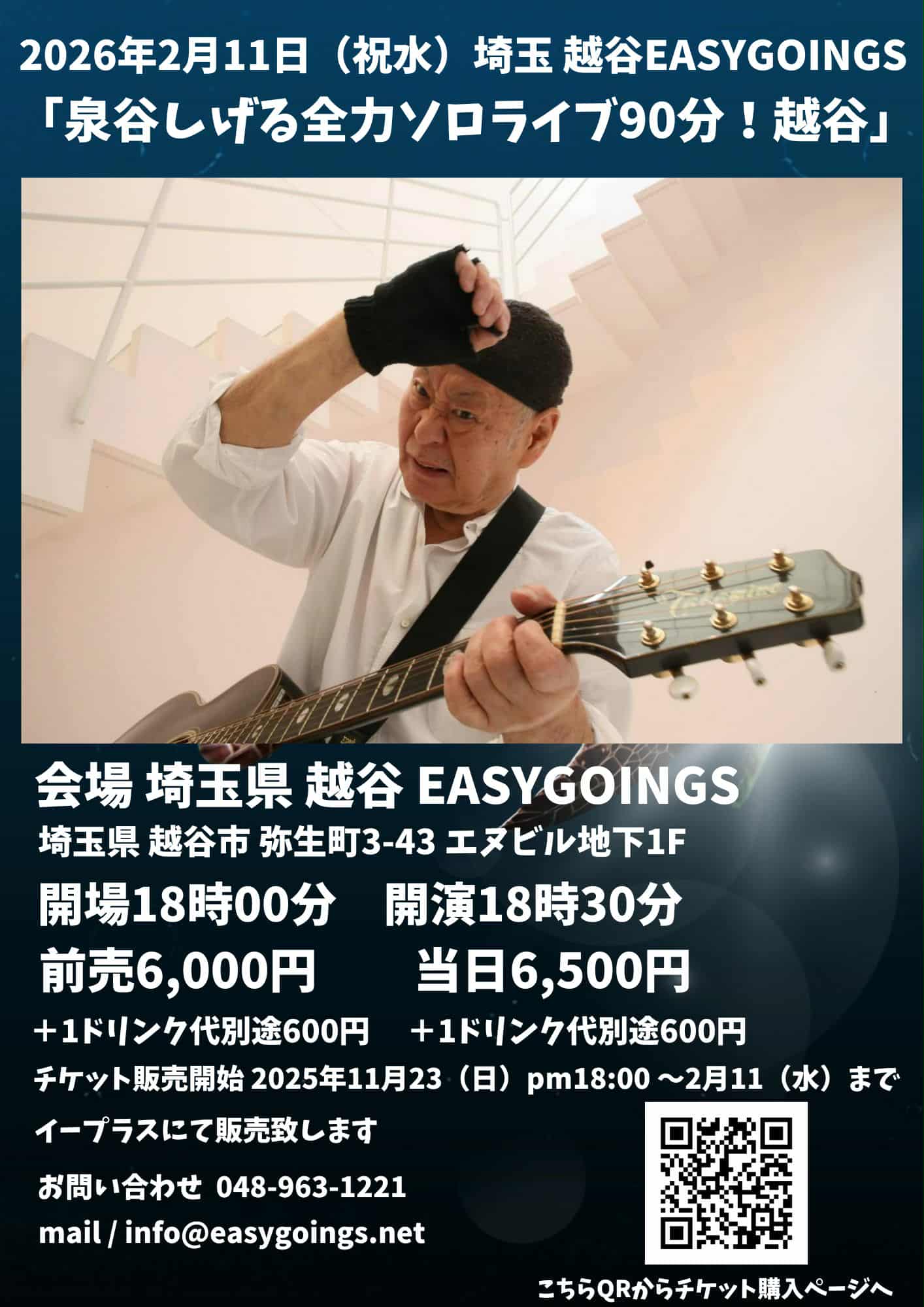 【ライブ】2/11(水・祝)「泉谷しげる全力ソロライブ90分! 越谷」